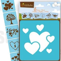 My Mandarine 42640O - zestaw 6 szablonów do malowania, 15 x 15 cm, odpowiedni dla dzieci od 3 lat, do flamastrów, farb lub bomb malarskich, serca