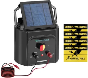 Instrukcja obsługiKluczowe informacjeDuży zasięg - dla ogrodzeń pastwisk o długości 15 kmWydajność - energii rozładowania na poziomie 0,8 JEnergooszczędność - zintegrowany panel słoneczny zasila urządzenieWytrzymałość - bateria o napięciu 6 V może być używana przez 21 dni na jednym ładowaniuMobilność - obudowa i uchwyt z tworzywa odpornego na promieniowanie UV ułatwiają przenoszenie urządzeniaNiezawodny elektryzator do ogrodzeń elektrycznych o dł. 15 kmOgrodzenie pastwiska pozwala bezpiecznie hodować na łące zwierzęta, takie jak konie, krowy, kozy czy owce. Z elektryzatorem solarnym WIE-SFE-800 od Wiesenfield możesz niezawodnie zasilać ogrodzenie elektryczne. Twoje zwierzęta będą tam, gdzie być powinny, a dzikie zwierzęta nie będą im przeszkadzać. Niezawodny elektryzator do pastucha elektrycznego jest niezwykle trwały i energooszczędny za sprawą zintegrowanej baterii oraz zasilania energią słoneczną.