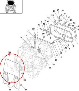 Szyba występuje w ciągnikach FORD Serii 40, wyprodukowanych po 01.11.1995.