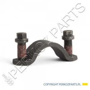 Uchwyt krzyżaka przedniej osi CNH 87311154. W zestawie z uchwytem znajdują się dwie śruby mocujące.