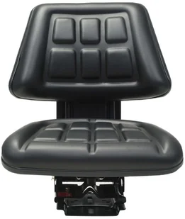 Wysokiej jakości siedzenie do ciągnika z mocną stalową ramą, zostało obite wytrzymałym i wodoodpornym materiałem PVC. Grubo wyściełany fotel z możliwością regulacji oraz oparciem zapewnią Ci komfortową jazdę ciągnikiem. Pokrętło znajdujące się za oparciem umożliwia dopasowanie fotela do wagi użytkownika, w zakresie od 50 do 130 kg. Fotel posiada wytrzymałe zawieszenie, które pomaga amortyzować wstrząsy na trudnym terenie, zapewniając tym samym płynną jazdę maszyną. Siedzenie do ciągnika jest także wyposażone w prowadnice, które ułatwiają przesuwanie fotela w przód/tył na długości 150 mm.