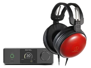 Zestaw składający się ze wzmacniacza słuchawkowego Rotel DX-3 oraz słuchawek Audio-Technica ATH-AWAS Asada Zakura