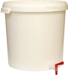 Wytrzymały i elastyczny - pojemnik fermentacyjny o pojemności 30 L wykonany jest z białego tworzywa przeznaczonego do kontaktu z żywnością. Nie odkształca się, jest odporny na przebarwienia i nadaje się do fermentacji piwa, wina lub nastawów cukrowych. Uniwersalna konstrukcja - szeroka pokrywa pojemnika posiada otwór na rurkę fermentacyjną. Samodzielna modyfikacja pojemnika pozwala również na montaż rurki kątowej i prowadzenie fermentacji w kilku pojemnikach jednocześnie, stawiając je jeden na drugim. Łatwe zlewanie trunków - dołączony obrotowy kran spustowy umożliwia całkowite zlanie piwa lub wina znad osadu.