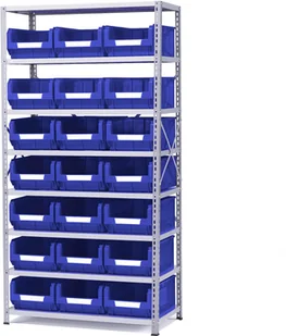 AJ Produkty Regał z 21 niebieskimi pojemnikami, 1970x1000x500 mm