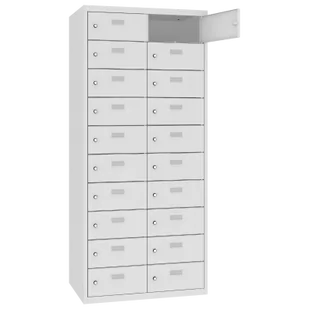 180 cm Wymiary (szerokość): 80 cm Wymiary (głębokość): 30 cm Ilość skrytek: 10 Zamek: 1 pkt. Kolor: Jasny szary - RAL 7035 ✅DO ŁĄCZENIA ZE SOBĄ: Dzięki bocznym otworom montażowym można łączyć ją w większe zestawy, dostosowując do potrzeb użytkownika.