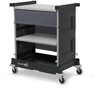 NKT 0 LLR angielskiej marki Numatic to wielofunkcyjny i kompaktowy wózek przeznaczony do przewożenia bielizny i wszelkiego wyposażenia hotelowego. Wyposażony w dwie szerokie wewnętrzne półki zasuwane roletą oraz jedną zewnętrzną.