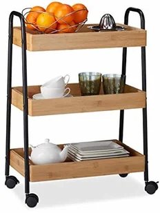 x szer. x gł. : ok. 70 x 49,5 x 28 cm - Wymiary wewnętrzne półek wys. x szer. x gł. : ok. 5 x 43,5 x 26 cm - Maksymalne obciążenie: 5 kg - Materiały: bambus, MDF, stal - Waga: ok. 4 kg Wózek do domu - 3 półki z podniesionymi krawędziami - Uchwyty ułatwiające pchanie - Kółka obracające się o 360 - Naturalnie piękny bambus - Z narzędziami do szybkiego montażu Zakres dostawy - 1x wózek do serwowania w pojedynczych częściach - Z materiałem montażowym - Z instrukcją - Elementy dekoracyjne nie wchodzą w zakres dostawy