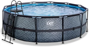 Basen EXIT z poszyciem w kamienny wzór o średnicy 450 cm i wysokości 122 cm Basen jest standardowo wyposażony w pompę filtrującą Stabilny - stalowa rama malowana proszkowo i silne stopy basenu EXIT zapewniają, że basen jest zawsze stabilny i może być używany przez lata. Zamontowana pompa filtrująca utrzymuje wodę w czystości i w ruchu, dzięki czemu zapobiega się zanieczyszczeniu wody. Ładny kamienny wzór i czarna rama nadają wyjątkowy i naturalny wygląd, a dzięki temu basen jest w pełni zintegrowany z ogrodem. Wnętrze basenu jest niebieskie, więc masz uczucie świeżości. Kształt basenu zapewnia łatwą zabawę z kilkoma osobami w basenie.