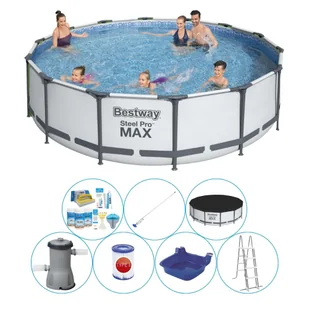 Przenieś to wyjątkowe uczucie wakacji do domu dzięki temu pięknemu, dużemu basenowi Steel Pro Max od Bestway! Ten trwały okrągły basen jest łatwy w montażu i wykonany z bardzo wytrzymałego materiału. Dzięki wysokowydajnej wykładzinie Duraplus basen jest bardzo wytrzymały, a ryzyko jego uszkodzenia jest niezwykle niskie. Basen pomieści 5 osób, jest wykonany z odpornej na korozję stalowej ramy i ma zawór spustowy ułatwiający opróżnianie na koniec sezonu. Krótko mówiąc, prawdziwy atut dla Twojego ogrodu! Dzięki temu zestawowi masz wszystko, czego potrzebujesz do optymalnej konserwacji basenu w jednym pakiecie w domu.