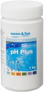Pomaga regulować wartość pH! Środek pH Plus marki Swim & Fun to preparat do regulacji pH, który podwyższa pH wody w basenie. Jest stosowany, gdy wartość pH wody w basenie jest za niska.