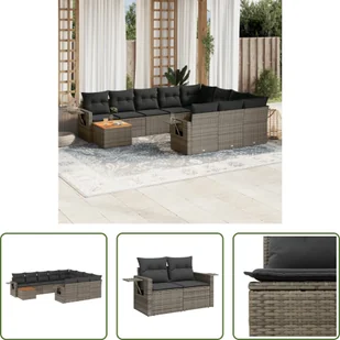 11-częściowy zestaw sof ogrodowych z poduszkami z szarego polirattanuTen zestaw sof ogrodowych jest idealnym dodatkiem do ogrodu, patio lub dziedzińca. Zapewnia wygodne i zachęcające miejsce do rozmów z rodziną i przyjaciółmi lub po prostu relaksu i cieszenia się życiem na świeżym powietrzu. Wytrzymały materiał: rattan PE, znany również jako polirattan, to wytrzymały, łatwy w pielęgnacji materiał syntetyczny o wyglądzie naturalnego rattanu. Charakteryzuje się niską wagą i jest łatwy w czyszczeniu.