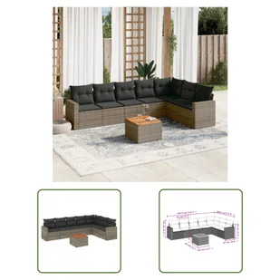8-częściowy zestaw sof ogrodowych z poduszkami z szarego polirattanuTen zestaw sof ogrodowych jest idealnym dodatkiem do ogrodu, patio lub dziedzińca. Zapewnia wygodne i zachęcające miejsce do rozmów z rodziną i przyjaciółmi lub po prostu relaksu i cieszenia się życiem na świeżym powietrzu. Wytrzymały materiał: rattan PE, znany również jako polirattan, to wytrzymały, łatwy w pielęgnacji materiał syntetyczny o wyglądzie naturalnego rattanu. Charakteryzuje się niską wagą i jest łatwy w czyszczeniu.