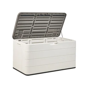 Utrzymaj porządek w swoim ogrodzie dzięki tej stylowej skrzyni z otworami do łatwego przenoszenia. Idealna do przechowywania poduszek, koców i innych tekstyliów ogrodowych, zapewni bezpieczne i suche miejsce dla twoich przedmiotów. Jej prosty design sprawia, że doskonale komponuje się z każdym patio lub balkonem jako praktyczny dodatek. głębokość 60 cmKolor BiałyMateriał Materiał syntetycznySzerokość 116 cmWysokość 60 cm