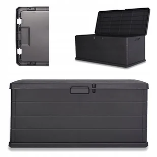 Jest to także idealne rozwiązanie na taras czy patio. Skrzynia jest bardzo pojemna, dzięki czemu pomieści wyposażenie letniego ogrodu wypoczynkowego, ale i części jadalnianej jak grill. Zastosowany materiał jest lekki dzięki czemu można ją przenieść w dowolne miejsce. Odlewy są wykonane z tworzywa odpornego na przebarwienia. Aby zachować trwałość produktów należy je odpowiednio impregnować i przechowywać wedle zaleceń producenta.