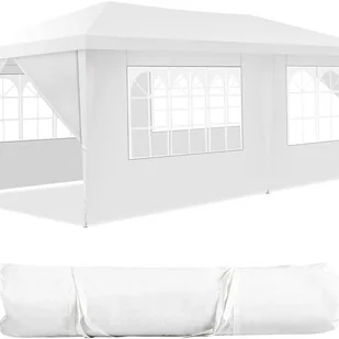 Specyfikacja: Kolor: biały Materiał: stal, 100 g/㎡ PE Waga produktu: 15,6 kg Wymiary całkowite: 6 m x 3 m x 2,5 m (dł. x szer. x wys.) Powierzchnia podłogi: 18 m² Pojemność: 10-12 osób Zawartość opakowania: 1 x altana ogrodowa 18 x śledzie 4 x ścianki 2 drzwi z zamkiem błyskawicznym 6 x liny 1 x torba transportowa 1 x instrukcja obsługi