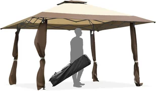 ——Regulowana wysokość dostosowana do różnych potrzeb: wysokość pawilonu można regulować za pomocą zatrzasków umieszczonych na nogach, co pozwala dostosować całkowitą wysokość do 267/275/284 cm w zależności od potrzeb.