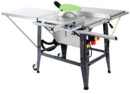Piła pilarka tarczowa do drewna krajzega LUNA BCS 315B 230VDane techniczne:Moc silnika: 1.6 kWKróciec do wiórów, okrągły: 100 mm Wys. piłowania 45° : 60 mmNapięcie zasil. 230 50 Hz VWys. piłowania 90°: 90 mmŚrednica piły tarczowej: 315 mmMasa: 50 kgSzerokość piłowania wzdłuż przykładni: 300/850 mmPrędkość obrotowa: 2800 r/min Zakres przechyłu piły tarczowej: 90-47Zalety:Bardzo stabilna i mocna pilarka tarczowa/formatowa, ze stołem wykonanym z grubej cynkowanej blachy i podstawą lakierowaną proszkowo.Zespół piły podwójnie łożyskowany, z oddzielną regulacją przechyłu (w zakresie 9045°) i wysokości piłowania przy pomocy śrub pociągowych.Prowadnica równoległa przesuwana na całej szerokości stołu, z silnym zaciskiem mimośrodowym.Maszynę łatwo się przemieszcza dzięki składanym rękojeściom oraz kółkom jezdnym.Stół ruchomy, wyposażony w liniał uciosowy i przykładnię oporową, porusza się na regulowanych rolkach po szynie.Gotowe wyprowadzenie do podłączenia odciągu.Łatwo przemieniana w jednostkę przewoźną, dzięki składanym nogom.Dostarczana z silnikiem o klasie szczelności IP54, wyłącznikiem przeciążeniowym i hamulcem silnika. (UWAGA! Przekrój żył kabla zasilającego min. 1.5 mm).Stycznik zwalniający przy zaniku napięcia, pokrywa zamykana na klucz, ruchomy stół, tylny blat przedłużający, piła tarczowa z węglików spiekanych, odpowiednie klucze.Pilarka dostarczana jest w komplecie w stanie zmontowanym. Nie są zamontowane tylko klin rozszczepiający i stół ruchomy.Wysokość pilarki z wstawionym stołem ruchomym przed piłą tarczową (9025 mm), 600670 mm.Bezpiecznik co najmniej 10 A (zwłoczny)Akcesoria:Blat dodatkowy z blachy stalowej 800x500 mm, montowany z prawej strony stołu maszyny.Pilarka dostarczana z szyną prowadnicy wzdłużnej i podziałką milimetrową.UWAGA! Pilarka na ilustracji przedstawiona jest z blatem dodatkowym, który stanowi wyposażenie opcjonalne.