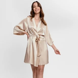 Jedwabny, krótki szlafrok w kolorze szampańskim Empress Just You