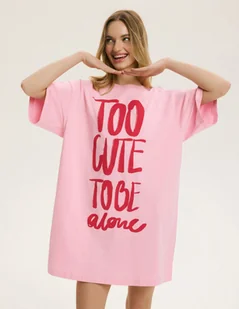 Koszula nocna Happiness Bloovii | różowy Koszula nocna Happiness Bloovii w pastelowym odcieniu różu to propozycja dla kobiet, które lubią łączyć wygodę z odrobiną humoru i pozytywnej energii. Luźny, lekko oversize’owy fason zapewnia pełną swobodę ruchów, a długość przed kolano sprawia, że model świetnie sprawdzi się zarówno do spania, jak i podczas leniwego poranka. Centralnie umieszczony, wyrazisty nadruk nadaje koszuli charakteru i przyciąga wzrok. Krótki rękaw oraz klasyczny, okrągły dekolt podkreślają casualowy styl całości. To idealna opcja dla fanek luźnych, komfortowych form i miękkich, naturalnych tkanin.