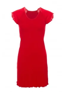 Elegancka koszulka nocna utrzymana w tonacji nasyconej czerwieni. Krótki, koronkowy rękaw, okrągły dekolt. Koszulka uszyta z przyjemnej w noszeniu wiskozy.