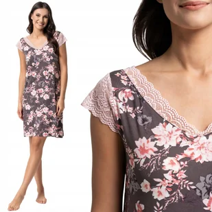 WISKOZOWA DOPASOWANA KOSZULA NOCNA DAMSKA W KWIATY Z KORONKĄ MORAJ M PATT 1