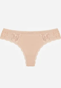 Beżowe Majtki Stringi Ozdobione Koronką z Bawełną Meniliphis