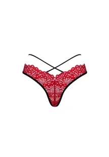 - stringi Mettia - czerwona koronka szyk i elegancja - paseczki na przodzie i z tyłu pełnia seksapilu - metalowe kółeczko nad pośladkami przyciąga uwagę - miły w dotyku materiał (90% poliamid, 10% elastan)