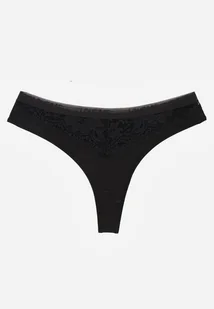 Czarne Majtki Typu Stringi z Bawełną i Koronką Zeliche