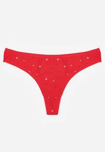 Czerwone Majtki Stringi z Bawełną w Kwiaty Calylia