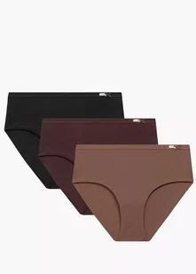 Klasyczne majtki odznaczają się średniej wysokości stanem, zaznaczonym miękką i nieuciskającą lamówką z logo Atlantic po boku oraz małą kokardką, szerokimi bokami i zabudowanym tyłem. Pakowane po 3 szt. Skład:95% bawełna, 5% elastan.