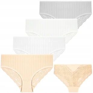 Majtki Damskie Figi Bikini Koronkowe 4-pak WIELOKOLOROWY MORAJ ❤️ Naturalny wdzięk i pewność siebie z zestawem fig damskich w zwierzęcy wzór. W skład kompletu wchodzą cztery pary klasycznych majtek typu bikini, wykonanych z miękkiej bawełny z dodatkiem elastanu, dzięki czemu idealnie dopasowują się do sylwetki, zapewniając wygodę przez cały dzień. ❤️ Każda para ma swój wyjątkowy charakter – od subtelnych, jednolitych kolorów po zmysłowe, printy w stylu kwiatków. To połączenie komfortu i odrobiny stylu, które sprawia, że codzienna bielizna nabiera charakteru. • 4-pak fig damskich typu bikini • Wykonane z wysokogatunkowej bawełny z dodatkiem elastanu • Elastyczne, miękkie i przyjemne w dotyku – idealne na co dzień • Kobiecy krój gwarantujący wygodę i dopasowanie