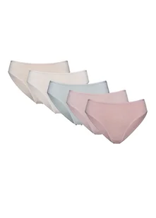 Majtki figi SOL-SOL 5-pak Esotiq | mix kolorów Zestaw pięciu klasycznych fig to praktyczna baza codziennej garderoby. Prosty, ponadczasowy krój dobrze układa się na sylwetce i zapewnia komfort noszenia przez cały dzień. Różnorodna, stonowana paleta kolorów sprawia, że komplet łatwo dopasować do różnych stylizacji i potrzeb. Miękka, elastyczna bawełna jest przyjemna dla skóry i pozwala jej oddychać, a subtelne wykończenia cienką gumką gwarantują dobre dopasowanie bez ucisku. To idealny wybór dla kobiet, które cenią wygodę, funkcjonalność i wysoką jakość materiałów w codziennej bieliźnie.