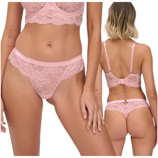 W pigułce: figi o kroju stringów, mocno eksponują pośladki, miękka koronka o kwiatowym wzorze, w kroku bawełniana wkładka, pudrowy róż, dobierz biustonosz z kolekcji Powder Whisper do kompletu i lśnij!
