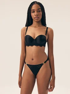 Stringi Brillant Esotiq w klasycznej czerni to połączenie komfortu z elegancką zmysłowością. Przód tych majtek to subtelne połączenie gładkiego materiału z d...