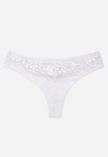 Szare Majtki Stringi z Bawełną Ozdobione Koronką Thelanthe