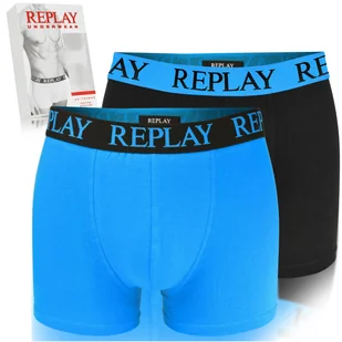 Replay Bokserki Męskie Majtki 2 sztuki Bawełna Czarne Kolor Logo Roz. XL