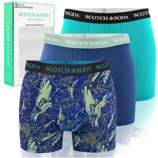 Zestaw bokserek w ciekawych wzorach i kolorach – połączenie jednolitych, intensywnych barw z oryginalnymi printem w stylu marki, które dodają charakteru codziennej garderobie. Szeroka, elastyczna guma w pasie z wyraźnym logo Scotch & Soda w kontrastowych kolorach zapewnia doskonałe trzymanie i nie uciska podczas intensywnego ruchu. Wydłużone nogawki – delikatnie dłuższe nogawki niż w standardowych bokserkach zapobiegają zadieraniu się materiału i zapewniają dodatkową ochronę oraz komfort podczas ruchu. Ultra miękka tkanina (Ultra-Soft Fabric) – delikatny w dotyku poliester zapewnia wyjątkowy komfort noszenia i szybko odprowadza wilgoć. Technologia Active Stretch – specjalnie opracowany materiał idealnie sprawdza się podczas aktywności fizycznej, treningów i uprawiania sportu.