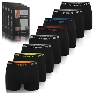 TOP SECRET Bokserki Męskie 8 sztuk Skład: 95% Bawełna; 5% Elastan Rozmiar L Szerokość na gumce bez naciągania ok: 39 cm Maksymalne naciągnięcie w gumce ok: 5...