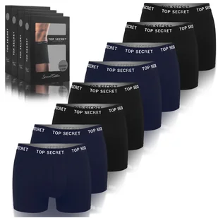 TOP SECRET Bokserki Męskie 8 sztuk Skład: 95% Bawełna; 5% Elastan Rozmiar L Szerokość na gumce bez naciągania ok: 39 cm Maksymalne naciągnięcie w gumce ok: 5...