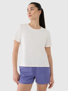 Koszulka treningowa damska - niezawodne wsparcie i komfort na każdym etapie treningu Głównym celem odzieży z linii treningowej jest zapewnienie wygody i wsparcia podczas każdego rodzaju treningu o różnym stopniu zaawansowania i intensywności. Dzięki szybkoschnącym, elastycznym materiałom i wygodnemu dopasowaniu koszulka zapewni pełną swobodę ruchów, pozwalając na maksymalne skupienie i komfort podczas ćwiczeń. Posiada oversizowy krój, który luźno układa się na sylwetce i zapewnia swobodę oraz standardową długość sięgającą do linii bioder. Splot interlock sprawia, że materiał jest wytrzymały, ale jednocześnie miękki, dobrze się układa i chłonie wilgoć. Posiada gładką strukturę po obu stronach.