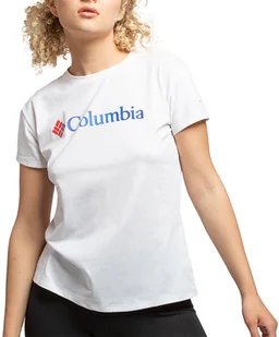 Koszulka Columbia Sun Trek 1931753101 damska, biała Klasyczna koszulka damska Columbia to idealny model na piesze wędrówki. Została wykonana z materiału posiadającego ochronę przed promieniowaniem słonecznym UPF 50. Koszulka posiada standardowy krój, zaokrąglony dekolt i krótkie rękawki. Przód został ozdobiony logo producenta.