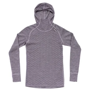 Damska koszulka z merynosa z kapturem Devold Kvitegga 230 to mocna warstwa bazowa na chłodne dni z dwustronnym wykończeniem, zapewniająca styl i komfort podczas każdej aktywności. Wyruszaj gdziekolwiek z pewnością, że będzie Ci ciepło. Devold Kvitegga to jedna z najcieplejszych warstw podstawowych od firmy Devold, zaprojektowana do aktywności o niższej intensywności, gdzie kluczowa jest izolacja termiczna. Ten model z kapturem i podwyższonym kołnierzem chroni szyję, plecy i głowę przed zimnem, a raglanowe rękawy i przedłużony tył zapewniają wygodę i swobodę ruchów. Wyjątkowa jest dwustronna konstrukcja – możesz wybrać między delikatnym geometrycznym a wyrazistym graficznym wzorem w zależności od nastroju lub stylu.