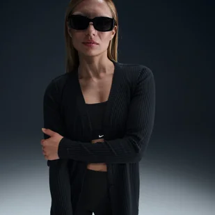 Damski dopasowany kardigan zprążkowanego materiału Nike Chill Knit - Czerń