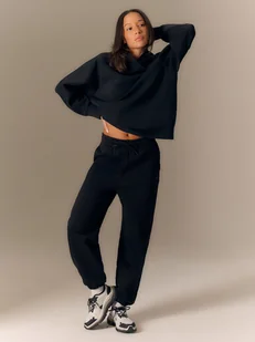 Spodnie dresowe joggery damskie to idealna propozycja na chłodniejsze dni, gdy chcesz połączyć wygodę z dopracowaną formą. Ocieplana dzianina zapewnia przyjemne ciepło i miękkość w codziennym noszeniu, otulając sylwetkę bez uczucia ciężkości. Wysoki stan dobrze trzyma w pasie i zwiększa komfort, a krój regular swobodnie układa się na ciele, nie ograniczając ruchów. Regulowany pas z zewnętrznym sznurkiem pozwala łatwo dopasować obwód, elastyczne nogawki utrzymują spodnie na miejscu, a otwarte kieszenie boczne dają szybki dostęp do drobiazgów – wybierz wygodę, która pracuje w Twoim rytmie.