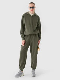 Spodnie nie posiadają podszycia, dzięki czemu są lżejsze i odpowiednie na cieplejsze dni. Po bokach znajdują się 2 kieszenie otwarte. Dodatkowo 2 kieszenie cargo po zewnętrznej stronie ud. Elastyczny pas z wewnętrzną regulacją na troki. Sprawdź: Spodnie dresowe – to musisz wiedzieć Spodnie dresowe ze ściągaczem damskie - CECHY: