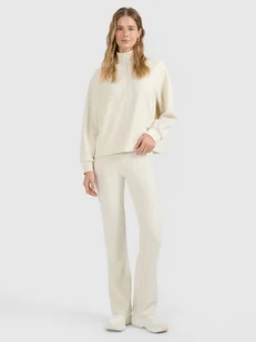 Spodnie dresowe damskie z modalem i prostą nogawką – miękkość na co dzień Miękki i przewiewny materiał zawiera modal, który jest przyjemny w dotyku i pozwala skórze oddychać Prążkowana struktura tkaniny dodaje charakteru i zapewnia komfort noszenia Dopasowany krój slim podkreśla sylwetkę i zapewnia swobodę ruchów Wysoki stan gwarantuje wygodne dopasowanie i wsparcie w okolicy talii Długie nogawki sięgają za kostkę, sprawdzą się przez cały rok