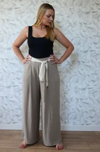 Spodnie uszyte są z lnu z domieszką wiskozy. Materiał jest lekki, miły w dotyku i mało mnący. Struktura materiału przypomina strukturę lnu. Spodnie posiadają dwie wygodne kieszenie, a z tyłu w pasie została w ...