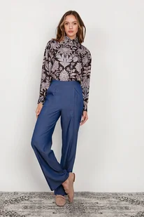 Spodnie z szerokimi nogawkami, z zaszytym kantem. Płaski przód doskonale maskuje brzuszek, a gumka z tyłu sprawia, że całość świetnie dopasowuje się do sylwetki. Wygodne kieszenie, zamek z boku. Doskonal ...