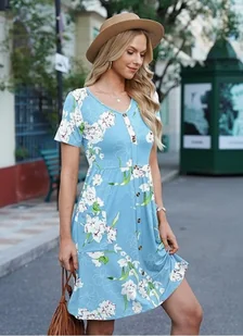 Letnia sukienka damskia na co dzień z krótkim rękawem Kwiaty L