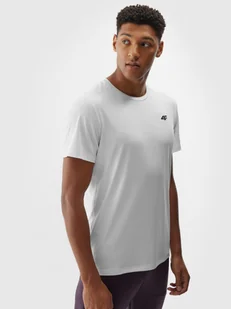 Koszulka treningowa męska - niezawodne wsparcie i komfort na każdym etapie treningu Głównym celem odzieży z linii treningowej jest zapewnienie wygody i wsparcia podczas każdego rodzaju treningu o różnym stopniu zaawansowania i intensywności. Dzięki szybkoschnącym, elastycznym materiałom i wygodnemu dopasowaniu koszulka zapewni pełną swobodę ruchów, pozwalając na maksymalne skupienie i komfort podczas ćwiczeń. Posiada krój regular, który wygodnie dopasowuje się do sylwetki oraz standardową długość sięgającą do linii bioder. Splot interlock sprawia, że materiał jest wytrzymały, ale jednocześnie miękki, dobrze się układa i chłonie wilgoć. Posiada gładką strukturę po obu stronach.